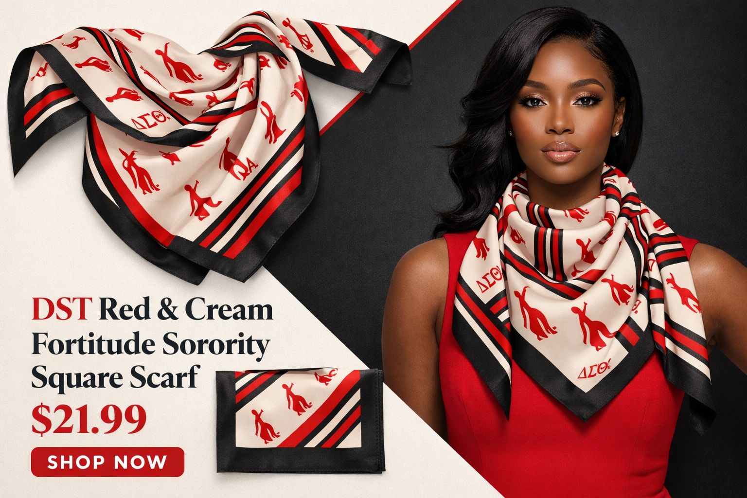 DST Red & Cream Fortitude Sorority Square Scarf